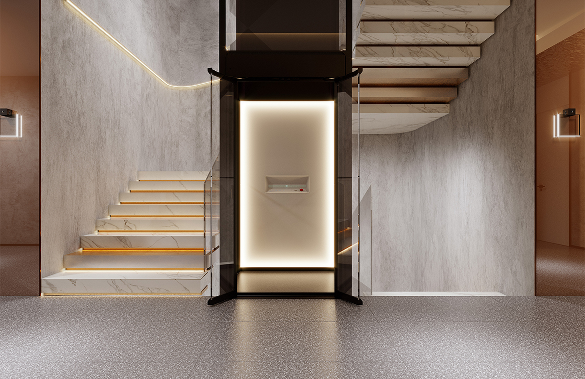 观光玻璃井道和钢板灵活搭配,兼顾电梯颜值和您的隐私